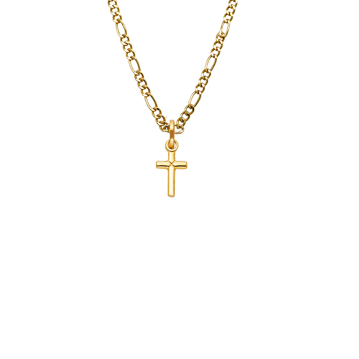 14k Gold Small High Polish Cross Pendant with choice of Solid Figaro or Valentino Chain