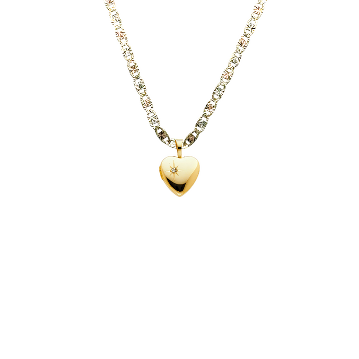 14k Gold Gemstone Star Picture Heart Locket Pendant with Solid Chain - LE-2040