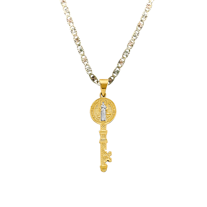 14k San Benito Large Gold Key Pendant with choice of Solid Figaro or Valentino Chain