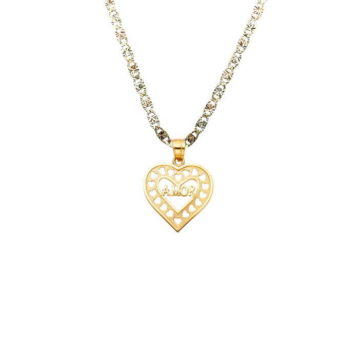 14k Amor Gold Heart Pendant with Solid Chain - LE-1862