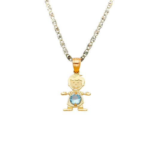 14k Gold Boy Son Niño March Birthstone Gemstone Pendant with Solid Chain - LE-0661-03