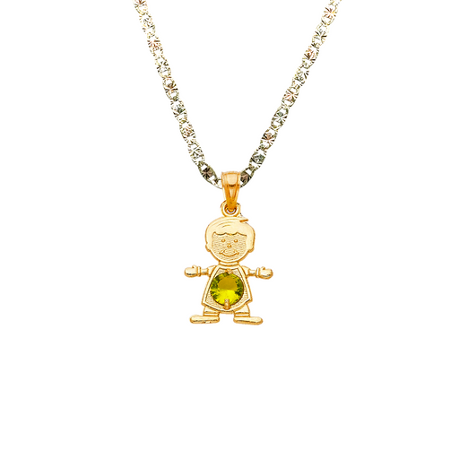 14k Gold Boy Son Niño November Birthstone Gemstone Pendant with Solid Chain - LE-0661-11