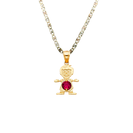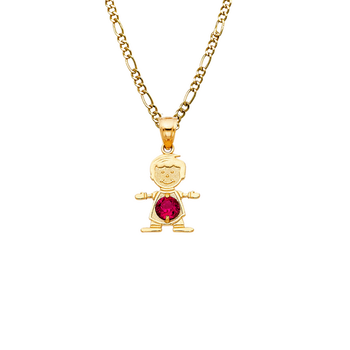 14k Gold Boy Son Niño July Birthstone Gemstone Pendant with Solid Chain - LE-0661-07