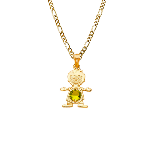 14k Gold August Month Niño Boy Son Birthstone Gemstone Pendant with choice of Solid Figaro or Valentino Chain *Can be welded together at the hands ...