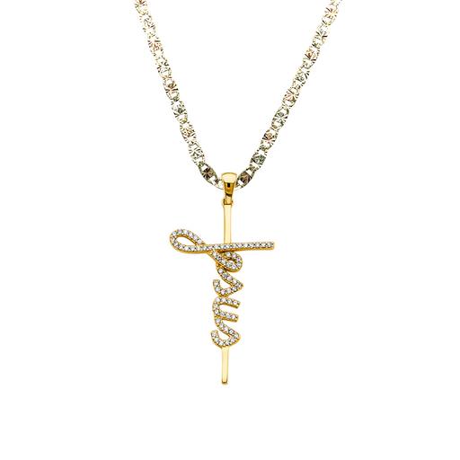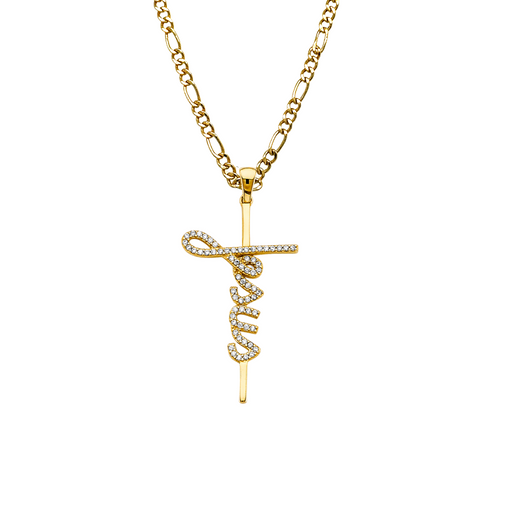 View full details14k Gold Faith Writing Cross Pendant with choice of Solid Figaro or Valentino Chain Product Details: Guaranteed 14 Karat Solid Gold Pendant and S...