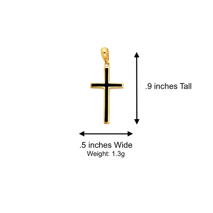 14k Gold Black Enamel Cross Pendant with Solid Chain - LE-1059