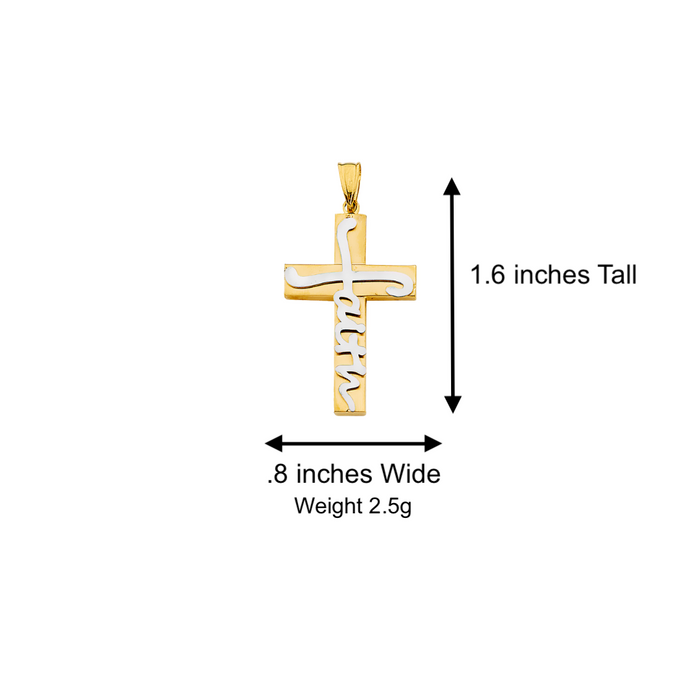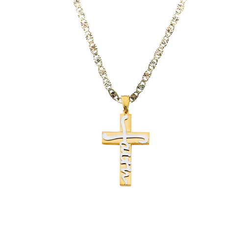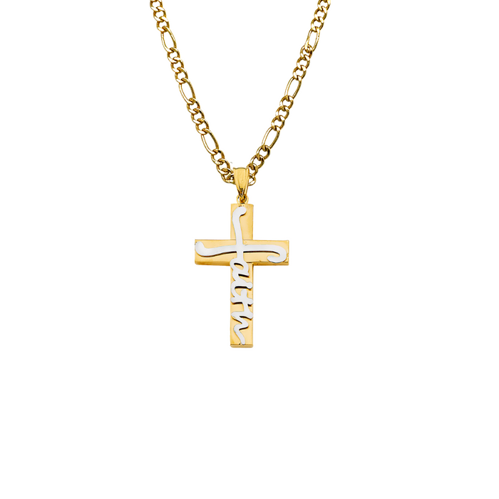 14k Gold Faith Writing Cross Pendant with choice of Solid Figaro or Valentino Chain