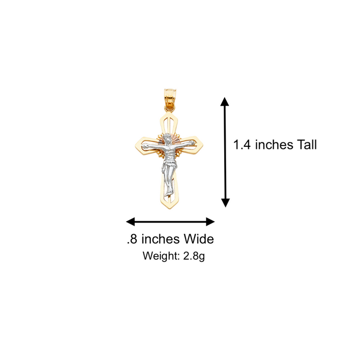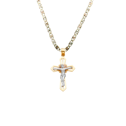 14k Two Tone Gold Jesus Cross Pendant with Solid Chain - LE-0026