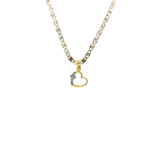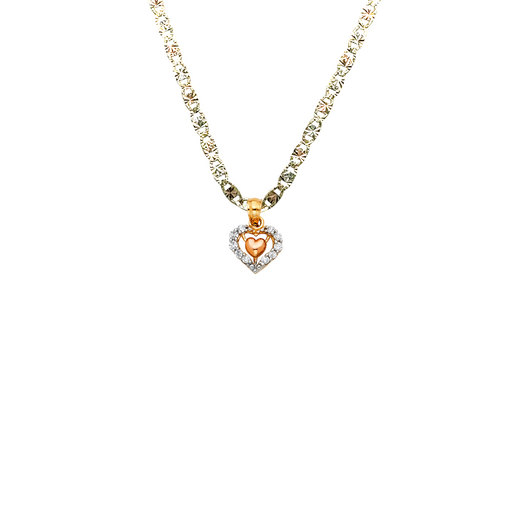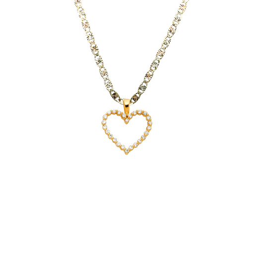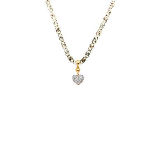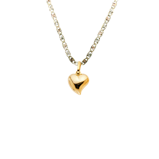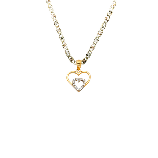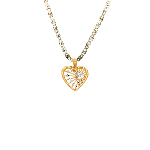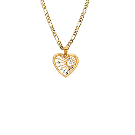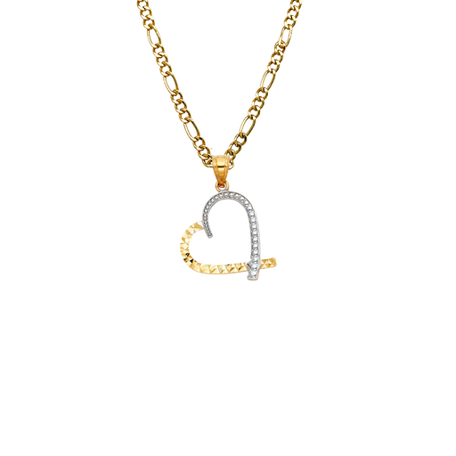 View full details14k Two Tone Gold Heart Pendant and choice of Solid Figaro or Valentino Chain Product Details: Guaranteed 14 Karat Solid Gold Pendant and Solid F...
