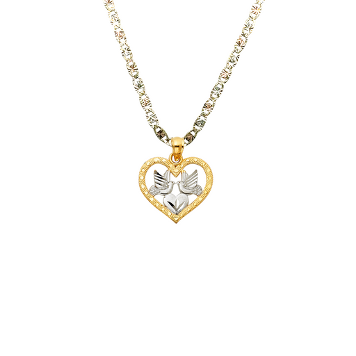 View full details14k Gold Doves Heart Pendant and choice of Solid Figaro or Valentino Chain Product Details: Guaranteed 14 Karat Solid Gold Pendant and Solid Figa...