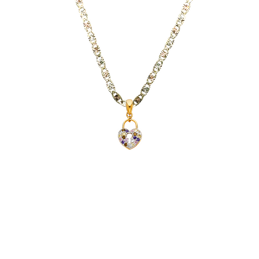View full details14k Gold TriColor Heart Gemstone Pendant and choice of Solid Figaro or Valentino Chain Product Details: Guaranteed 14 Karat Solid Gold Pendant an...