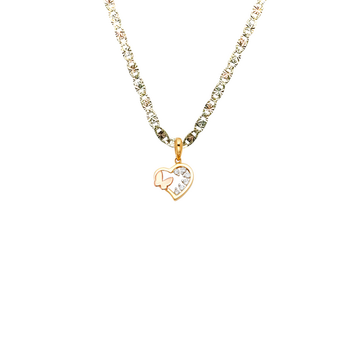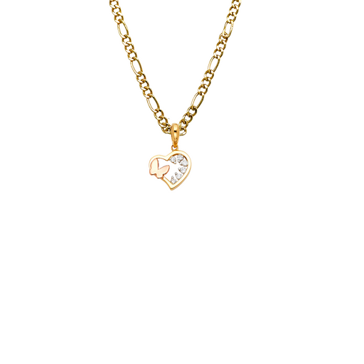 View full details14k Gold Heart Butterfly Gemstone Pendant and choice of Solid Figaro or Valentino Chain Product Details: Guaranteed 14 Karat Solid Gold Pendant a...