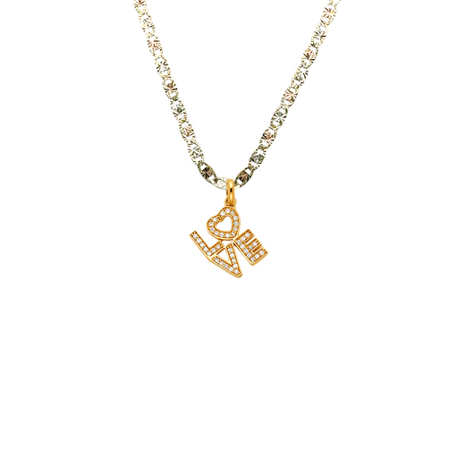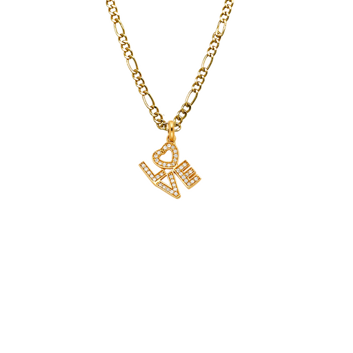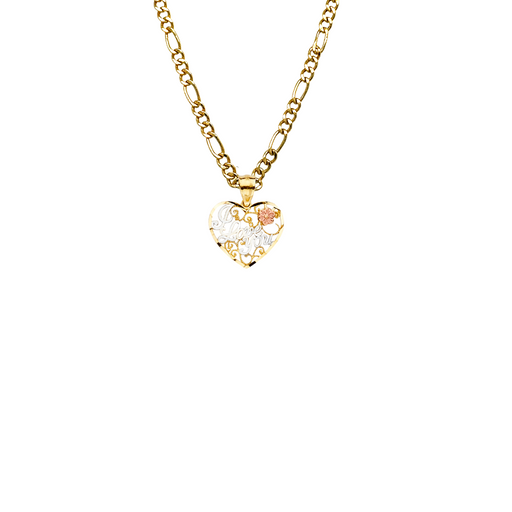 View full details14k I Love You Three Tone Gold Heart Pendant and choice of Solid Figaro or Valentino Chain Product Details: Guaranteed 14 Karat Solid Gold Pendan...