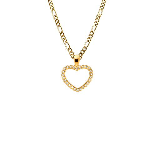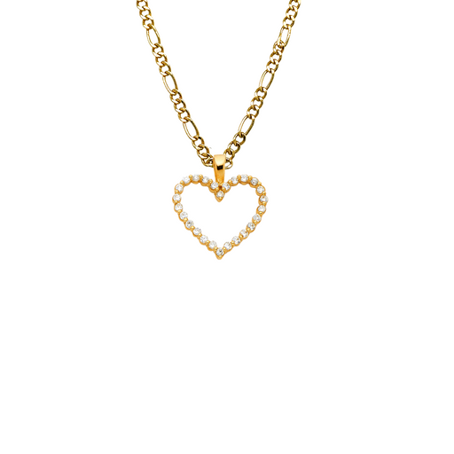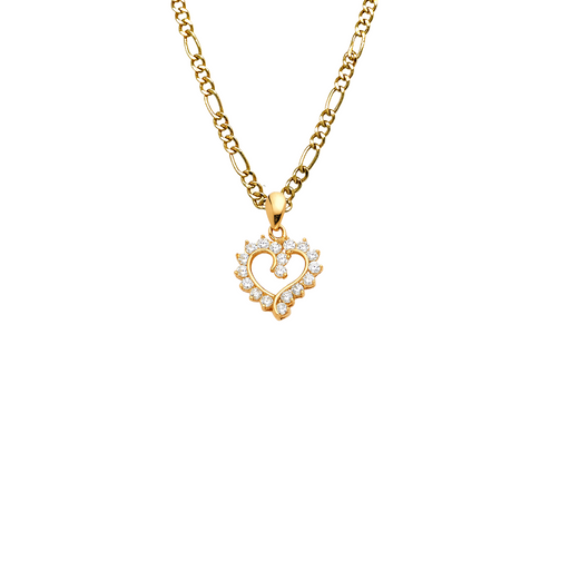 View full details14k Love Gemstone Gold Heart Pendant and choice of Solid Figaro or Valentino Chain Product Details: Guaranteed 14 Karat Solid Gold Pendant and So...