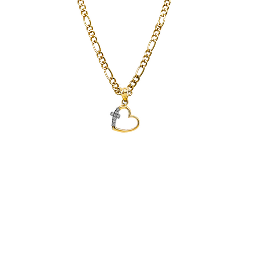 View full details14k Gold Heart Cross Gemstone Pendant and choice of Solid Figaro or Valentino Chain Product Details: Guaranteed 14 Karat Solid Gold Pendant and S...