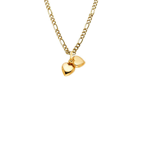 View full details14k Gold Double Hollow Heart Pendant and choice of Solid Figaro or Valentino Chain Product Details: Guaranteed 14 Karat Solid Gold Pendant and So...