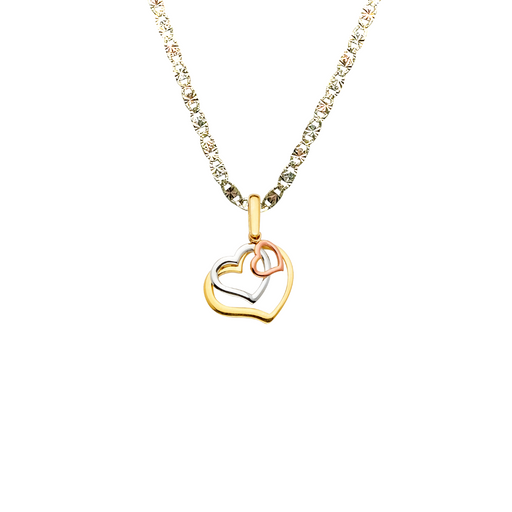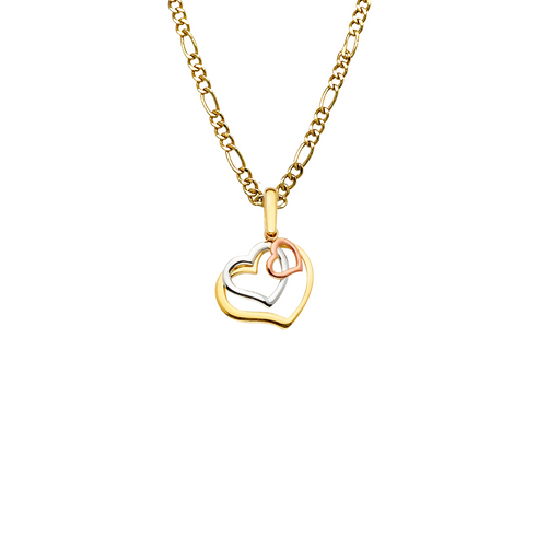 14k Three Color Gold Triple Heart Pendant and choice of Solid Figaro or Valentino Chain Product Details: Guaranteed 14 Karat Solid Gold Pendant a...