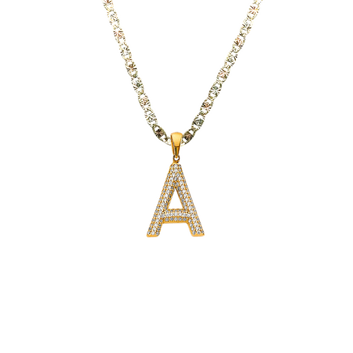 View full details14k Gold Gemstone Bezel Letter Pendant with Solid Tri Gold Valentino Chain Product Details: Guaranteed 14 Karat Solid Gold Pendant and Solid Vale...