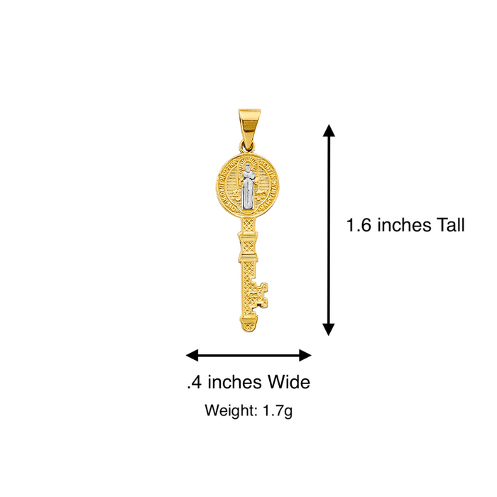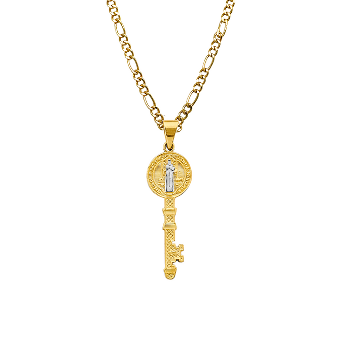 14k San Benito Large Gold Key Pendant with choice of Solid Figaro or Valentino Chain