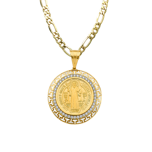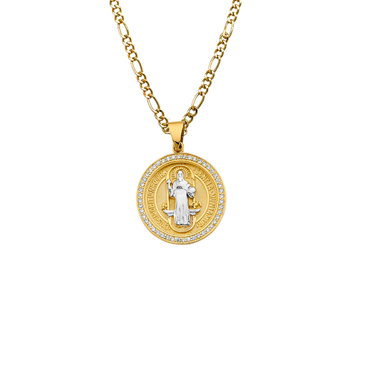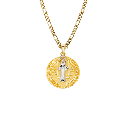 14k San Benito Two Tone Gold Pendant with Solid Figaro Chain - LE-2869