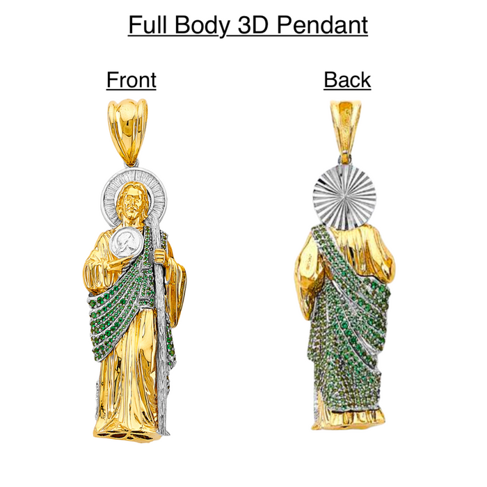 14k San Judas Gold 3D Full Body Gemstone Pendant with Solid Chain - LE-3168
