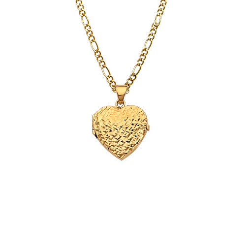 View full details14k Gold Diamond Cut Picture Heart Locket Pendant with choice of Solid Figaro or Valentino Chain Guardapelo Product Details: Guaranteed 14 Karat ...