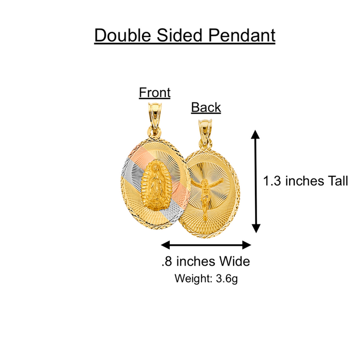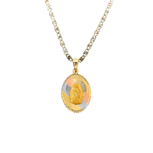 14k TriColor Gold Virgin Mary and Christ Pendant with choice of Solid Figaro or Valentino Chain