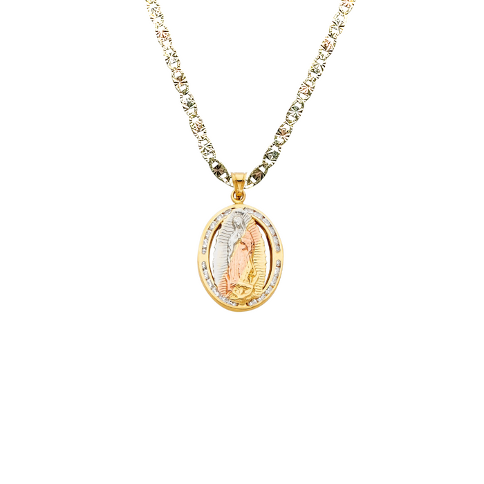 14k Virgin Mary Gold Pendant Oval Gemstones with Solid Chain - LE-805