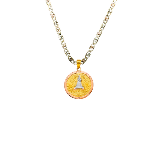 View full details14k TriColor Gold Virgin Mary Round Pendant with choice of Solid Figaro or Valentino Chain Product Details: Guaranteed 14 Karat Solid Gold Pendan...