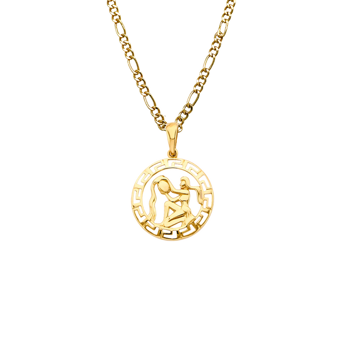 14k Aquarius Zodiac Sign Gold Pendant and choice of Solid Figaro or Valentino Chain
