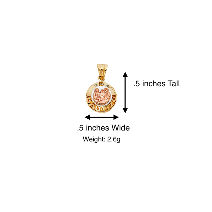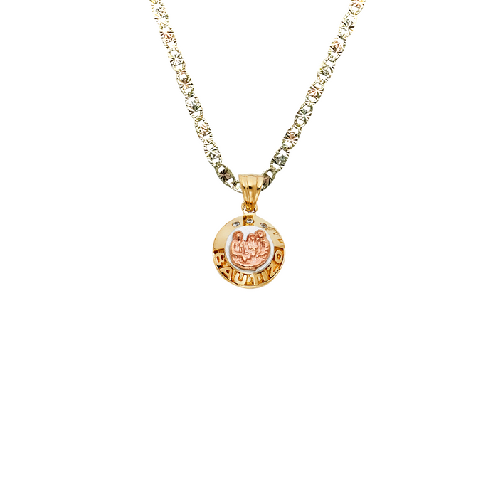 14k Bautizo Gold Pendant with Gemstones and Solid Chain - LE-1451