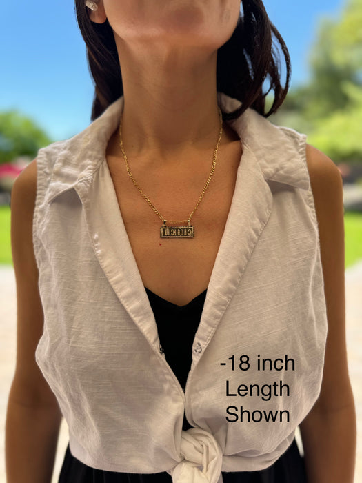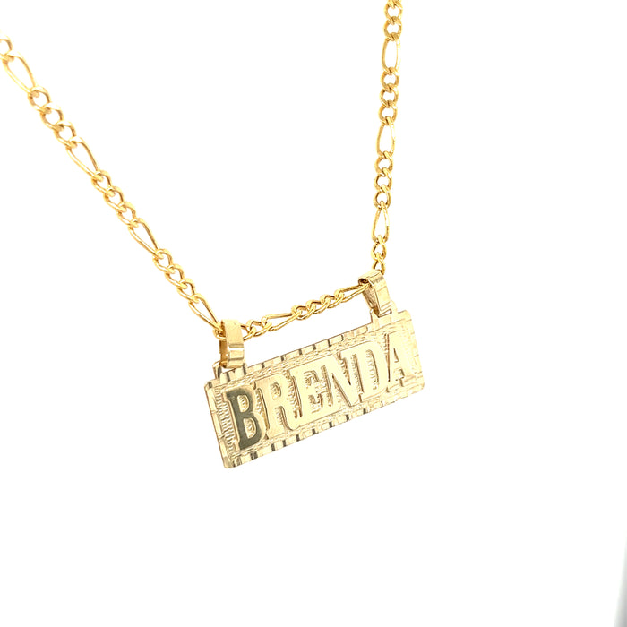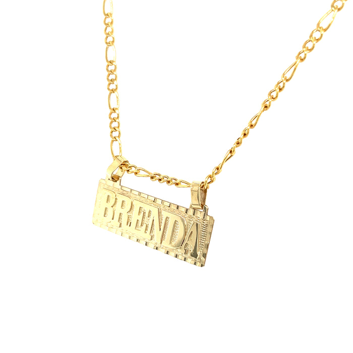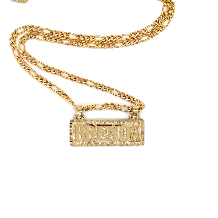 14k Block Letter Gold Name Plate with Solid Figaro Necklace