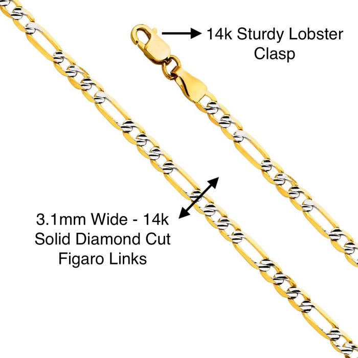- Solid Diamond Cut Figaro Chain 3.1mm Wide available in 18in, 20, or 24 inches long