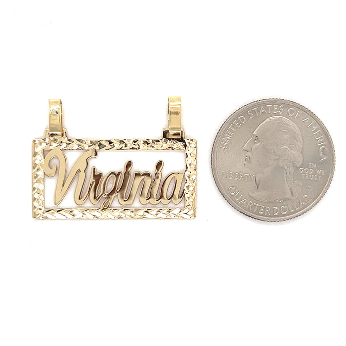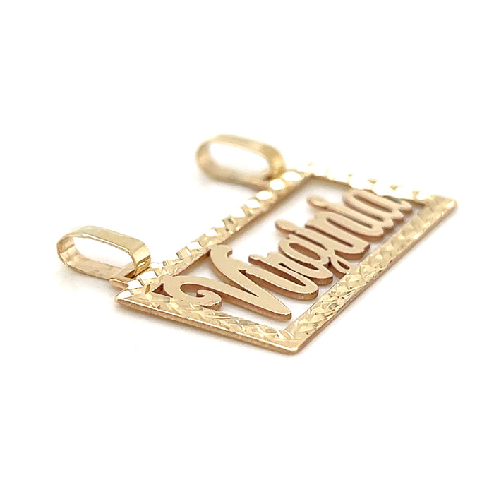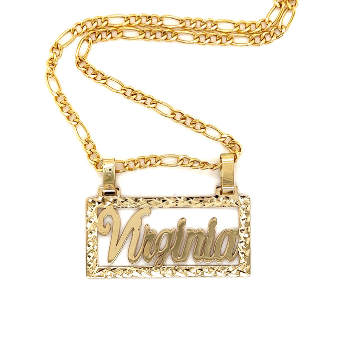 14k Diamond Cut Edge Cursive Nameplate Cutout with Solid Figaro Necklace