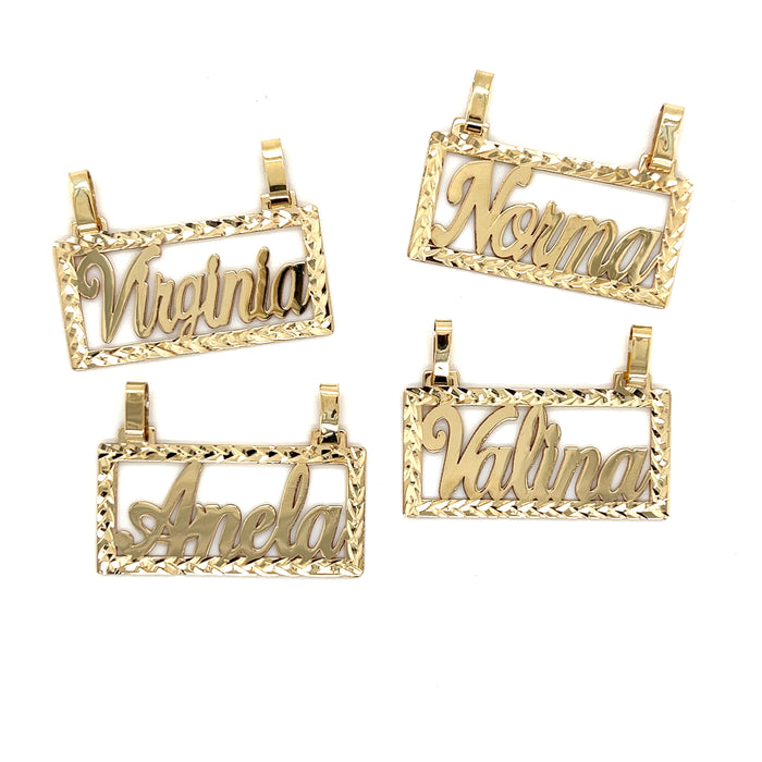 • Cursive Letter Font with Diamond Cut Edge on Rectangle Plate