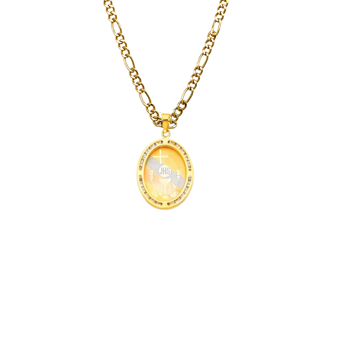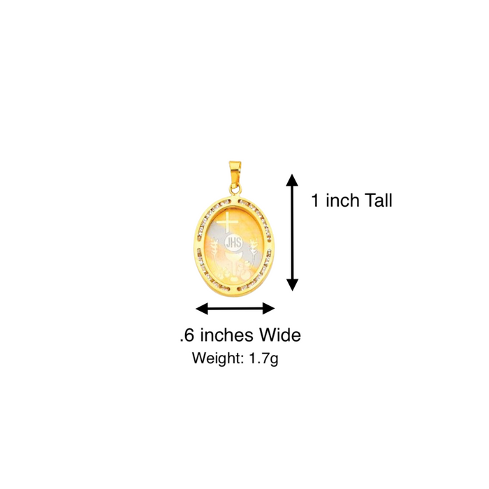14k First Communion Tri-Tone Gold Pendant and Solid Chain - LE-186