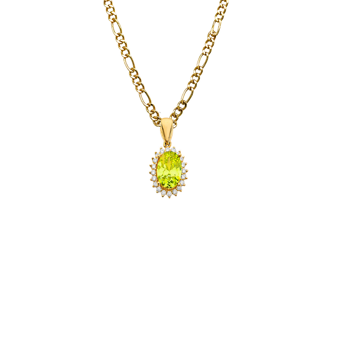 14k Gold August Month Oval Birthstone Gemstone Pendant with choice of Solid Figaro or Valentino Chain