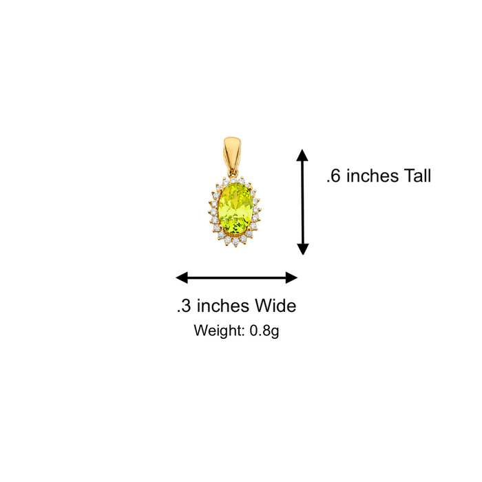 14k Gold August Oval Birthstone Gemstone Pendant with Solid Chain - LE-3037-08
