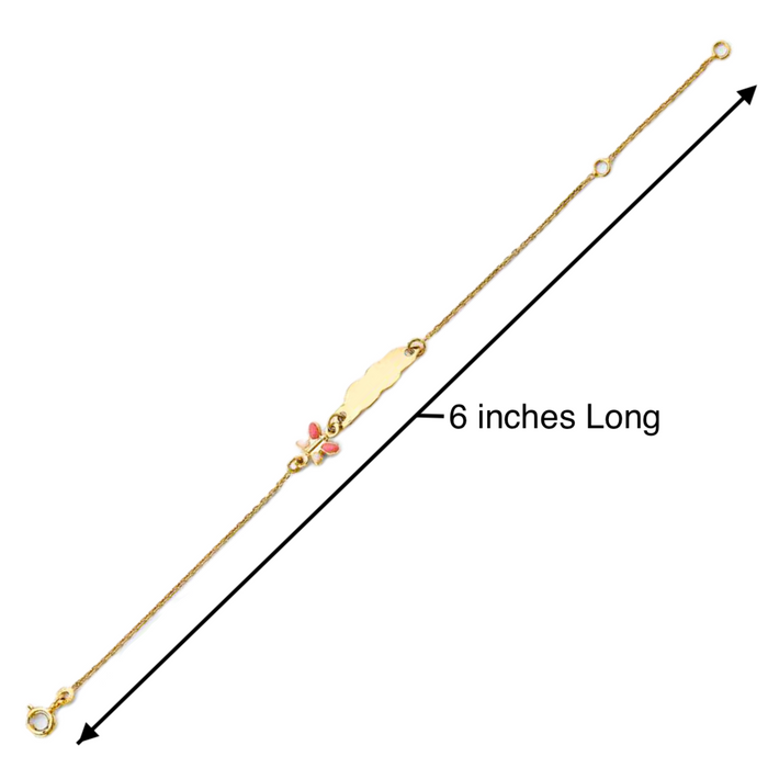 14k Gold Baby ID Bracelet with Gold Name Overlay and Enamel Butterfly - LE-0921
