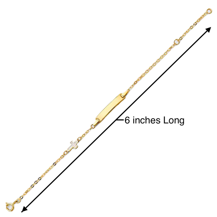 14k Gold Baby ID Bracelet with Gold Name Overlay and Enamel Cross Link - LE-0924