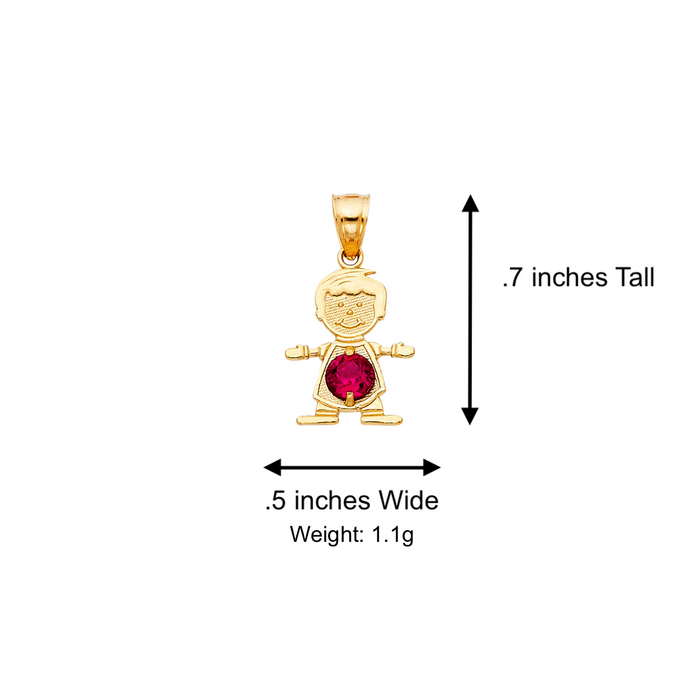 14k Gold Boy Son Niño July Birthstone Gemstone Pendant with Solid Chain - LE-0661-07