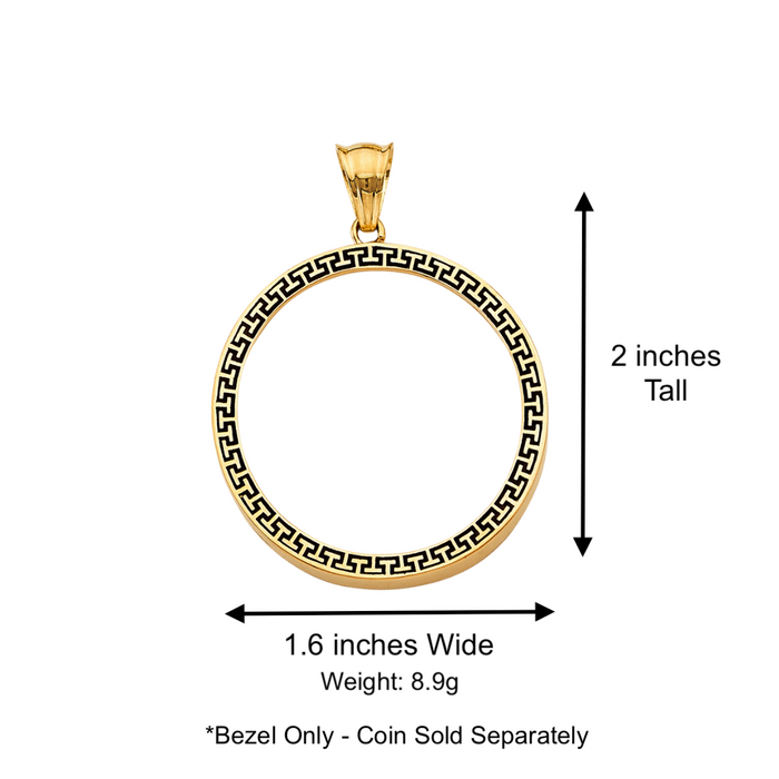 14k Gold Centenario Greek Design Bezel with Solid Figaro Chain - LE-2754