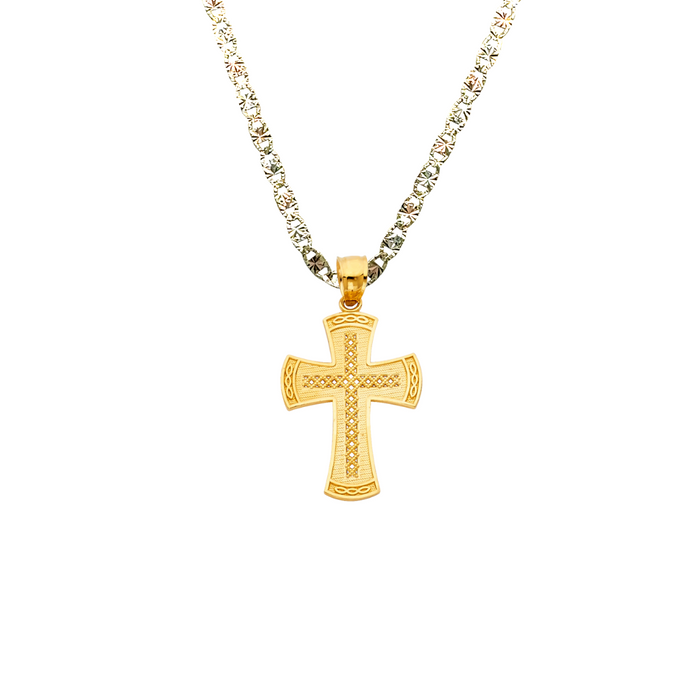 14k Gold Cross Pendant with choice of Solid Figaro or Valentino Chain