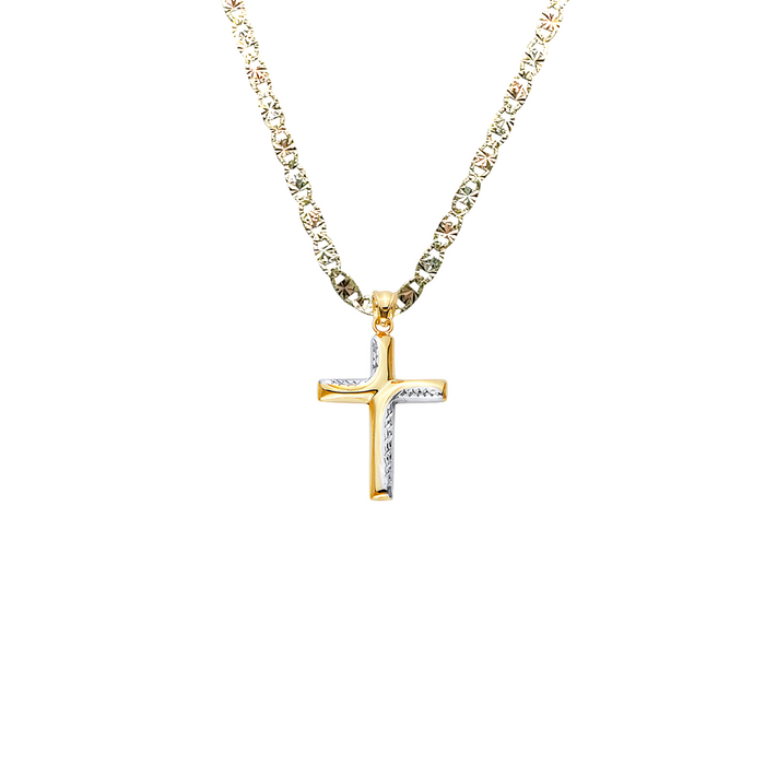 14k Gold Diamond Cut Cross Pendant with Solid Chain - LE-2534