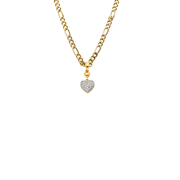 14k Gold Two Tone Heart Pendant and choice of Solid Figaro or Valentino Chain