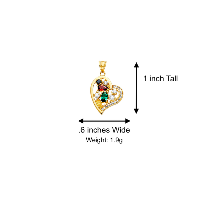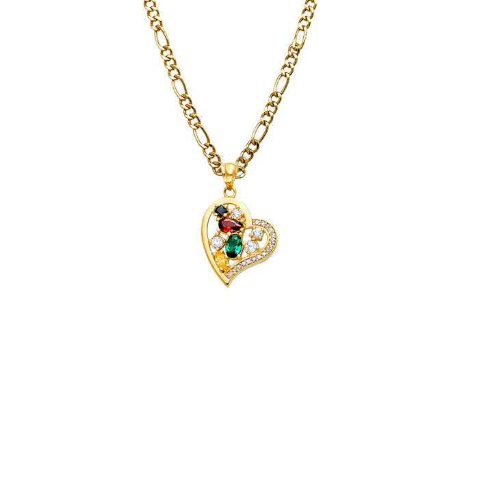 14k Gold Gemstone Heart Pendant with Solid Chain - LE-2540