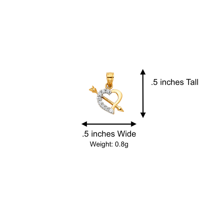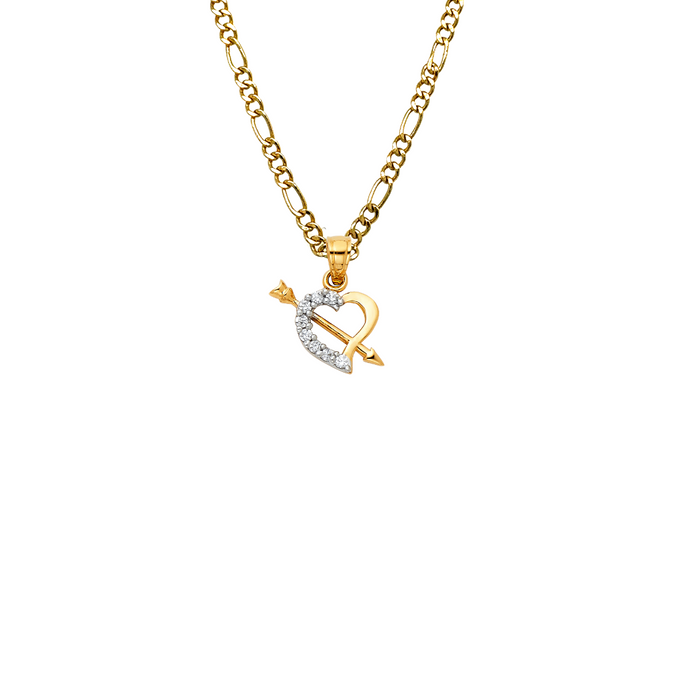 14k Gold Heart Arrow Gemstone Pendant with Solid Chain - LE-0420