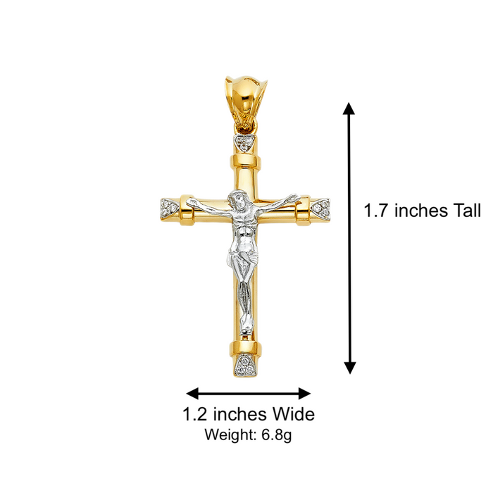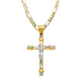 14k Gold Gemstone Jesus Cross with Solid Figaro Chain