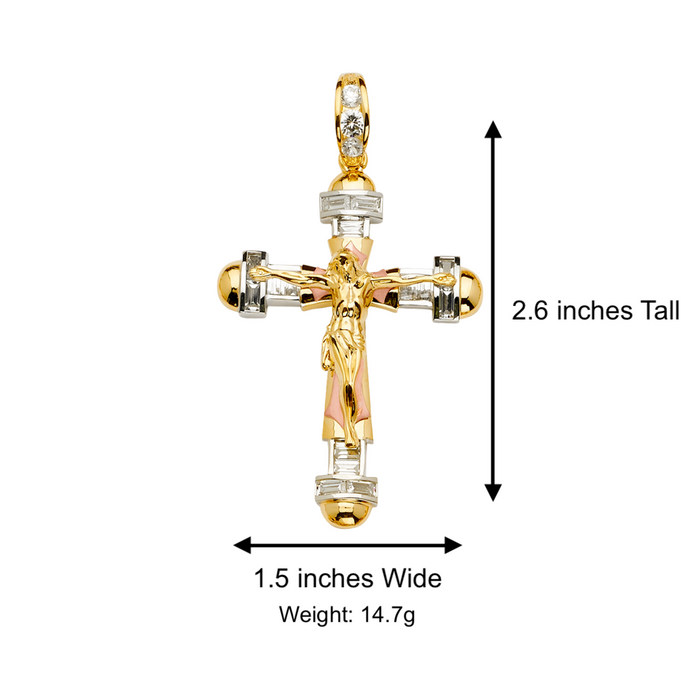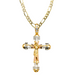 14k Two Tone Gold Gemstone Jesus Cross with Solid Figaro Chain