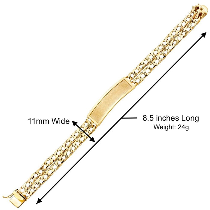 14k Gold Men's Solid Two Row Nugget Cuban Link ID Bracelet with Custom Gold Name Plate - LE-0389
